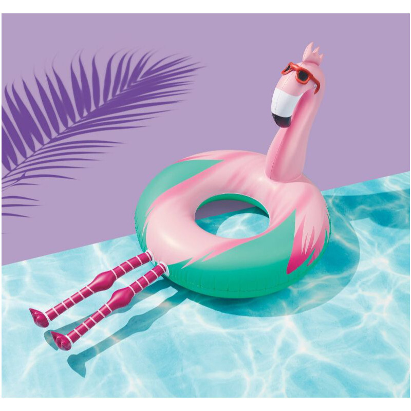 Spend your summer chillin’ out on the water with the Flamingo Pool Float with Legs from Sun Squad™. This quirky pool float features a round shape with an elongated back and two long legs made to look like a big pink flamingo with red sunglasses relaxing on a pool tube. Simply fill it with air and set it on the water for a fun, relaxing way to enjoy the summer sun. Whether you’re out on the lake or in the pool, this pink flamingo pool float is a must-have for summer days on the water.