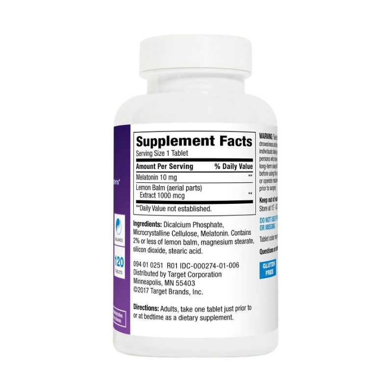 Looking for a good night’s sleep? Grab the Melatonin 10mg Tablets from up & up™. Melatonin is produced naturally by the human body to help regulate its sleep-wake cycles. Here, it’s combined with soothing lemon balm to a create melatonin tablet aimed at helping you get the rest you deserve. Whether you’re a shift worker, suffering from jet lag or simply find yourself having difficulty getting to sleep at night, these are for you.